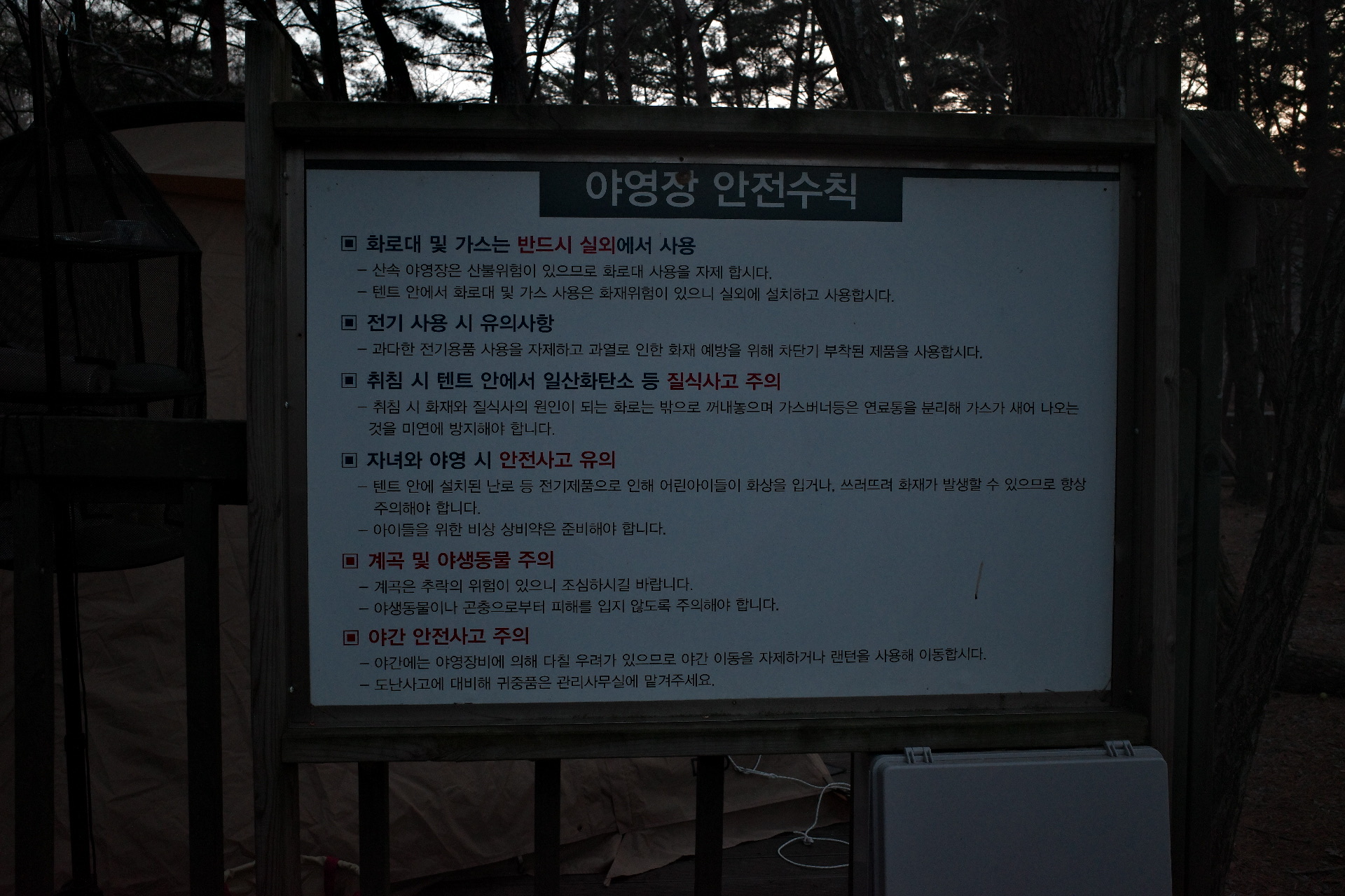먼저 관리동에 들러서 안내를 듣고, A2사이트로 향했다. 특별한 안내는 없고 반려견동반 가능한 캠핑장이라 강아지 관련해서 이용수칙이 추가되어있다