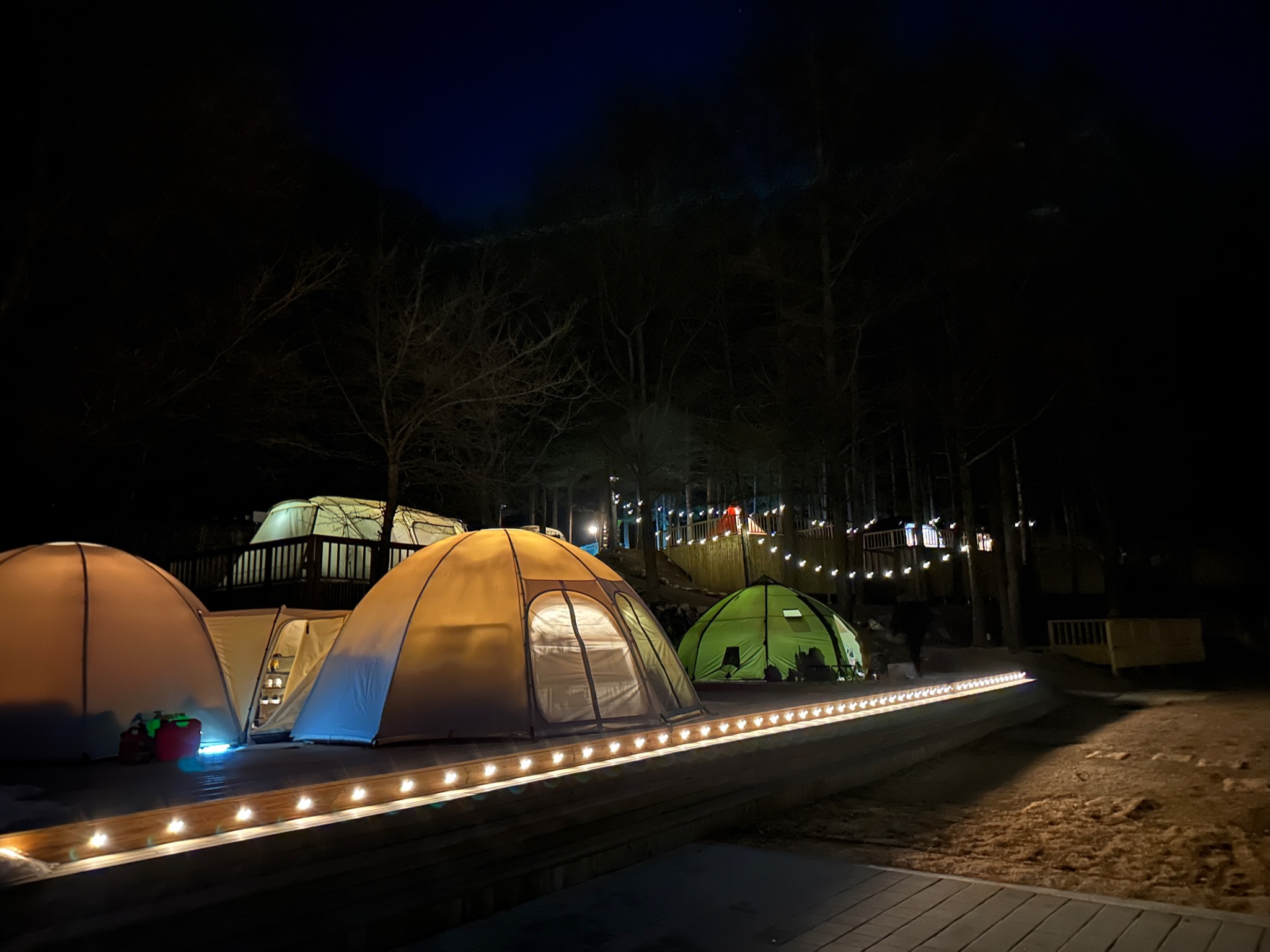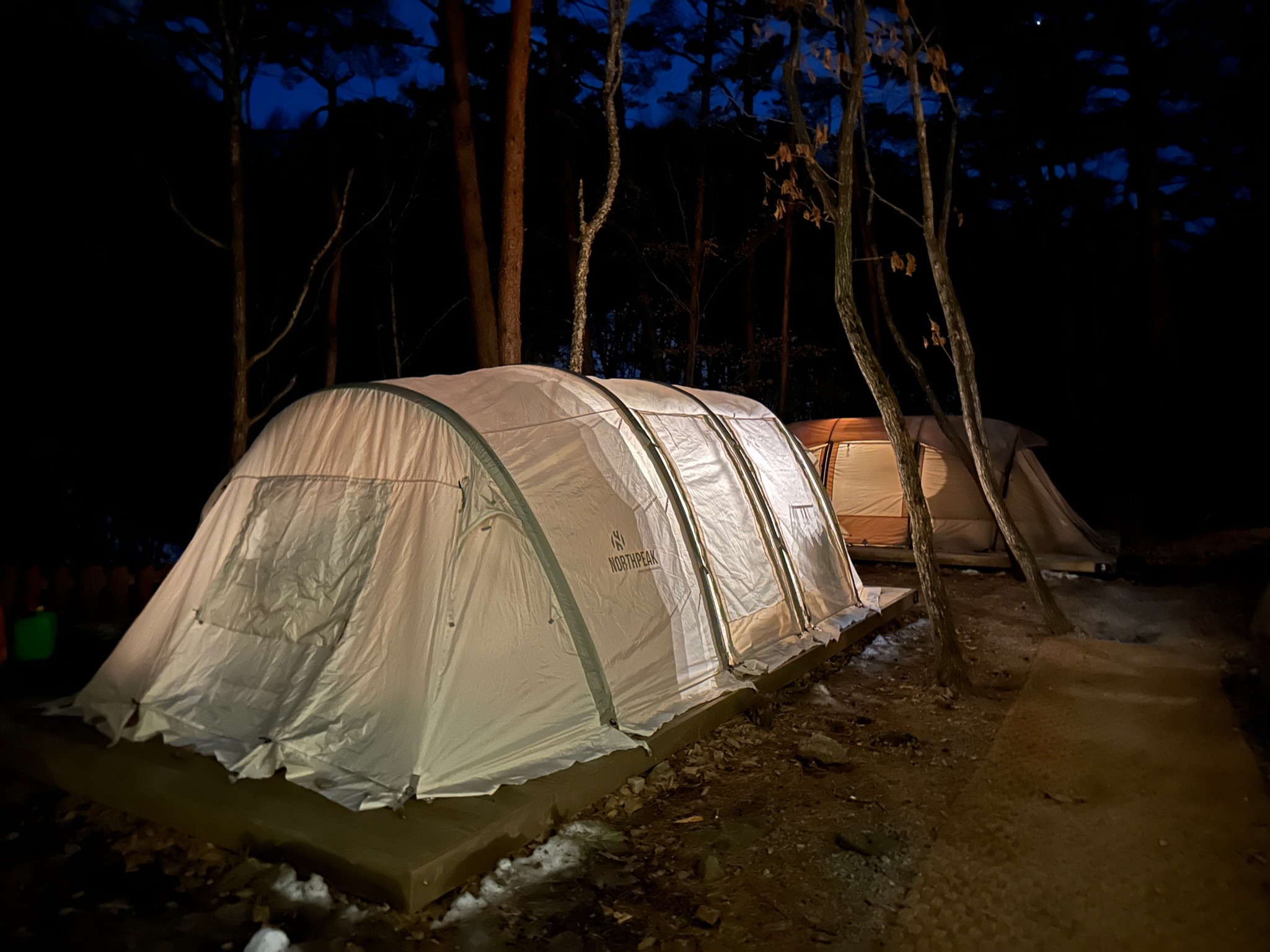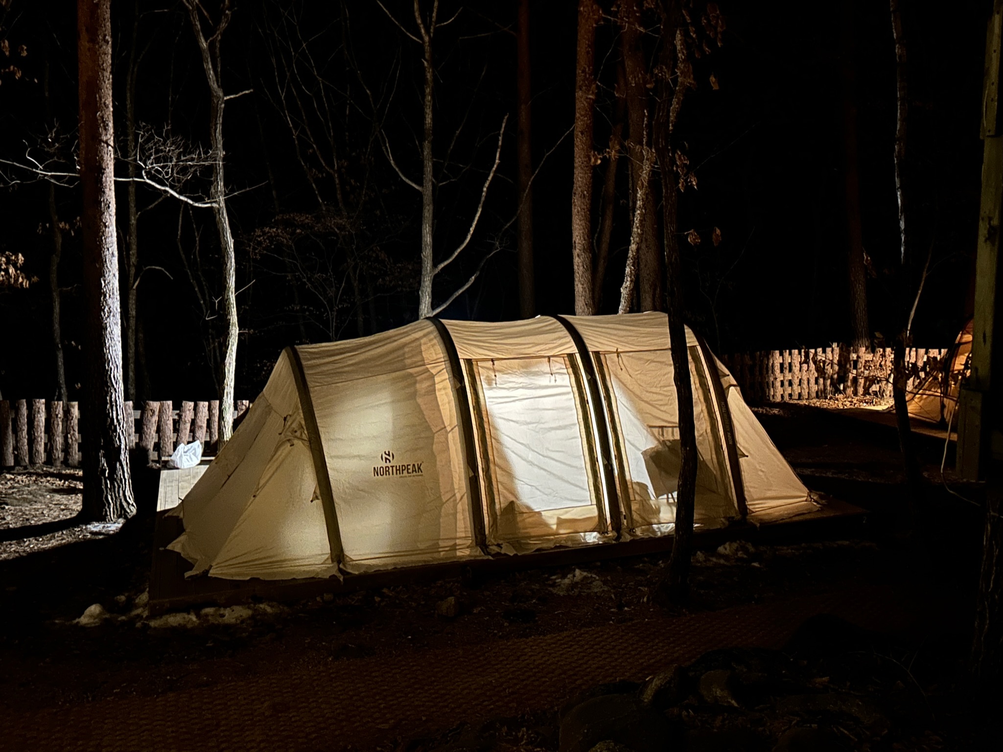밖에서 텐트를 보면 새어나오는 불빛이 정말 따뜻하고 아늑하게 보인다.