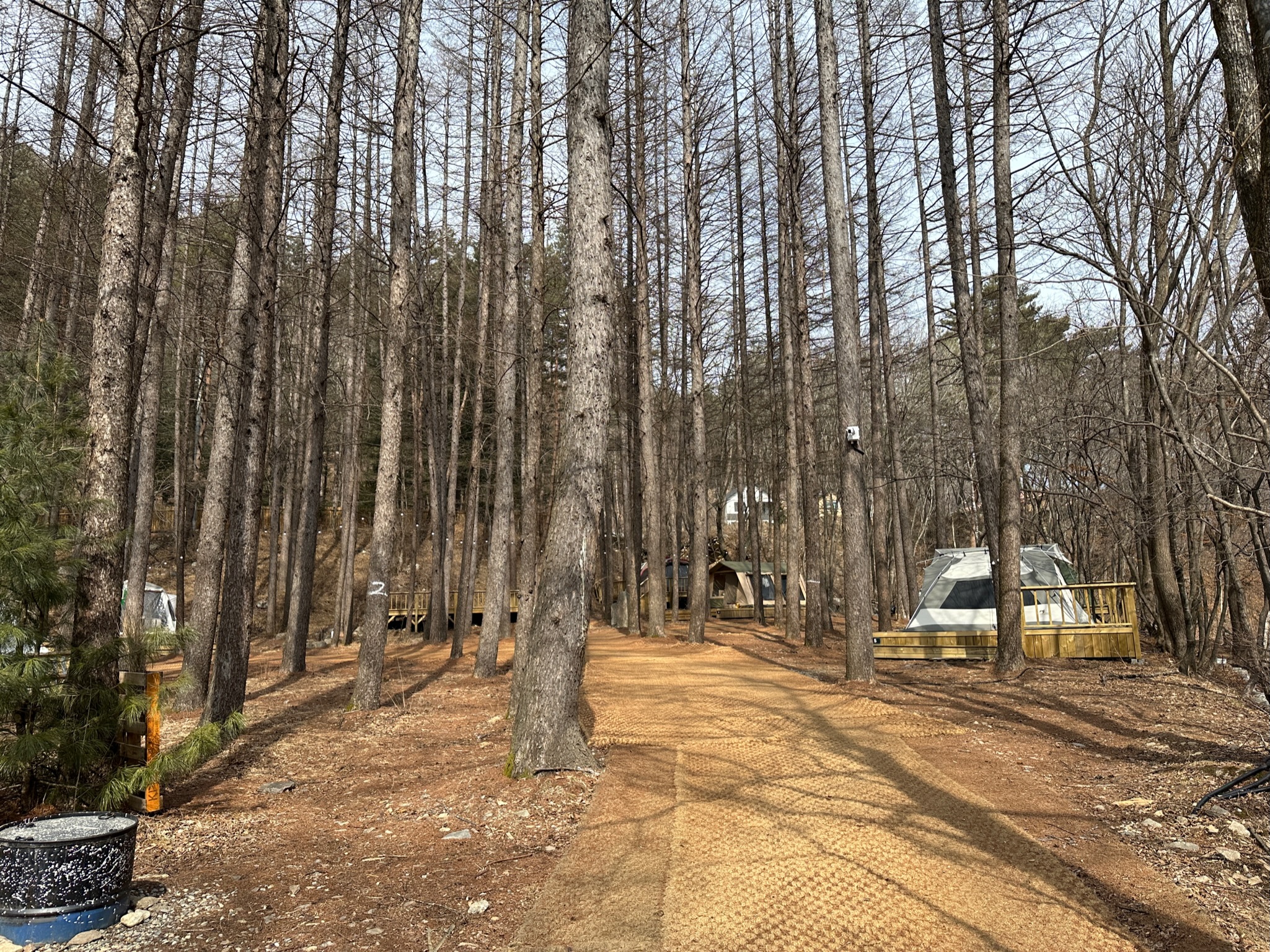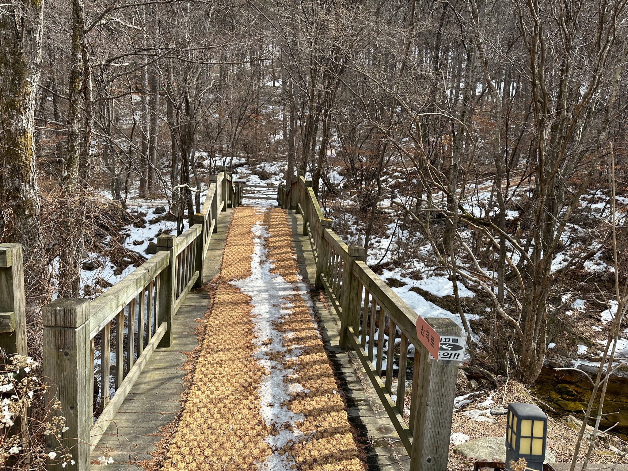 계곡 옆길로 산책코스라고 있긴한데 겨울이라 그런지 잠겨있어서 사이트 구경하면서 걸어다녔당.
