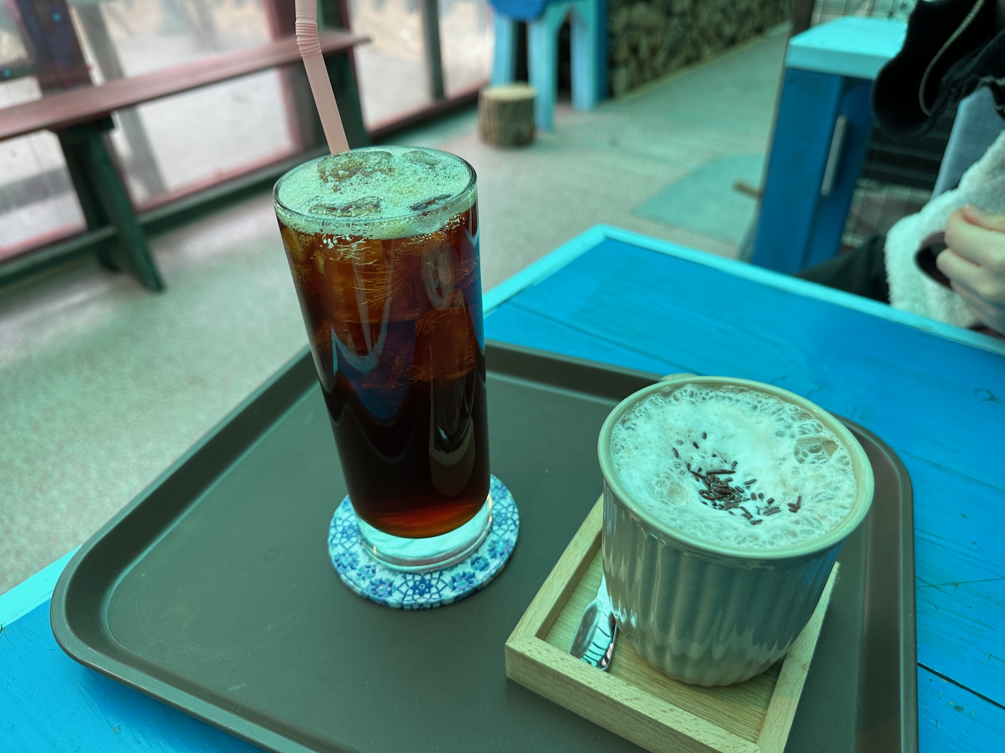 산장하우스블렌딩커피와 핫초코를 마셨는데 핫초코가 너무 부드럽고 맛있었다. 커피는 엄청 연하고 산뜻한 맛