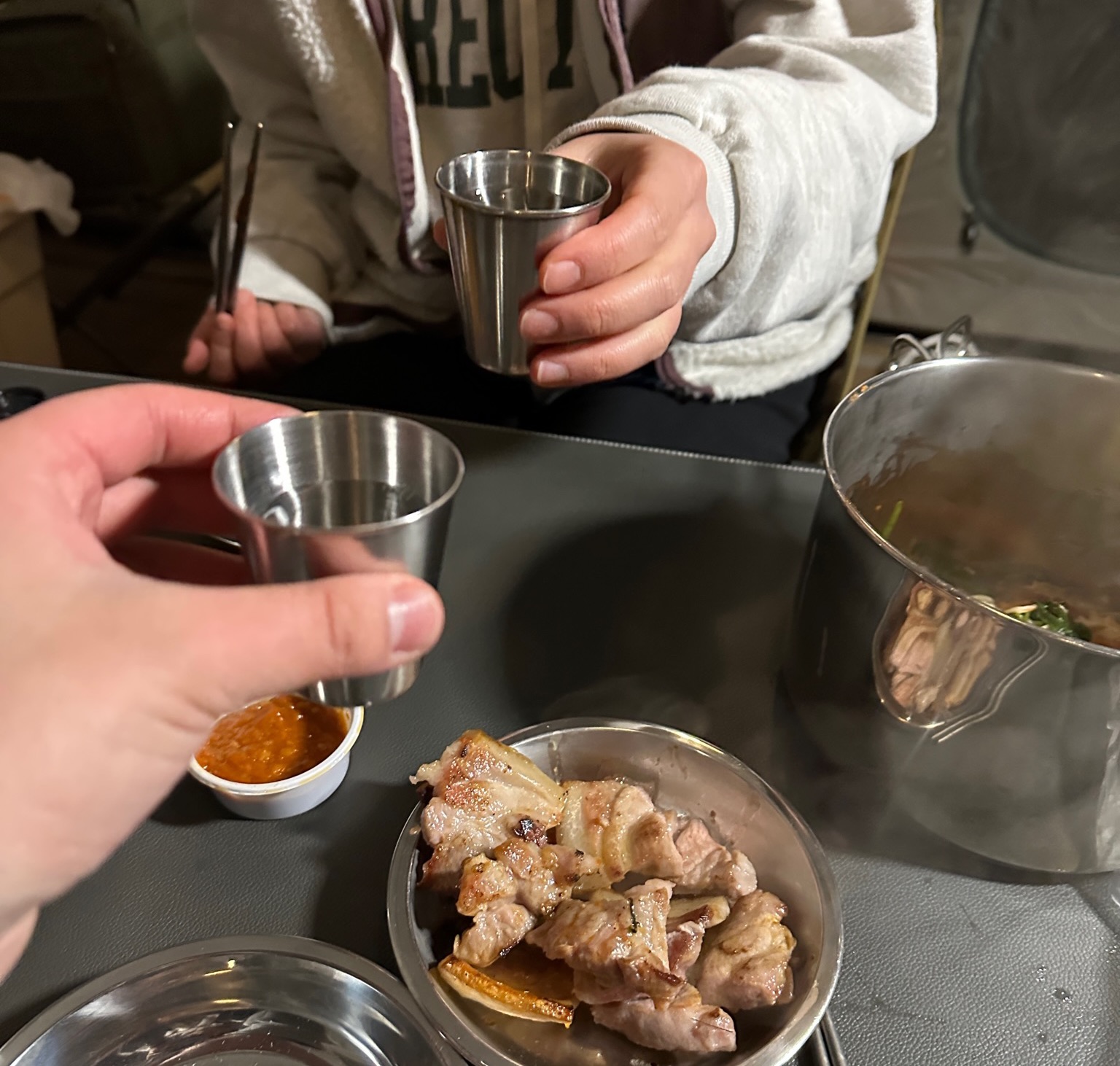 6시가 넘어가니 급 어두워져서 정신없이 텐트피칭을 완료하고, 후다닥 저녁먹을 준비~~~